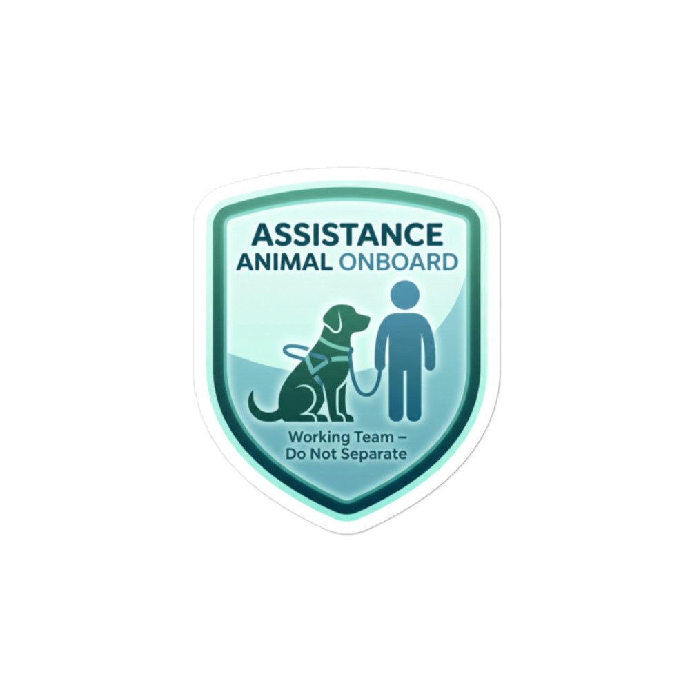 This Working Team assistance animal sticker balances warmth and authority, reinforcing that an assistance animal and handler function as a single unit. The calm, confident design promotes understanding while clearly stating that separation is not permitted.