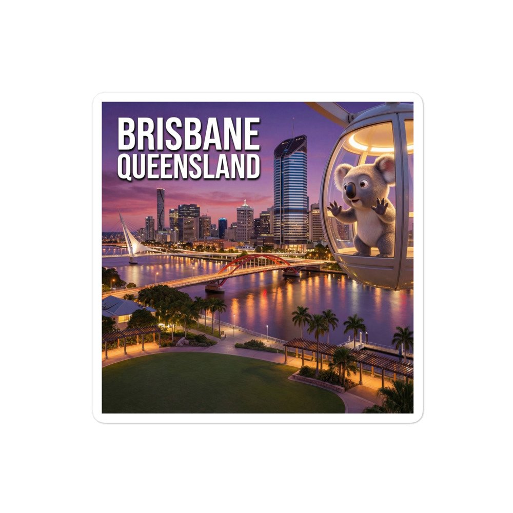 Featuring a cute 3D-style Koala riding the Wheel of Brisbane, this design captures the magic of the River City at night. We’ve captured the glowing skyline, the Brisbane River, and the South Bank parklands in a fun, animated movie style. It’s the perfect memento for anyone who loves the city lights.